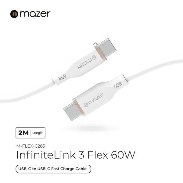 Dây Cáp MAZER Infinite.LINK 3 PD60W USB-C to USB-C 2M cable (Flex, Silicone)