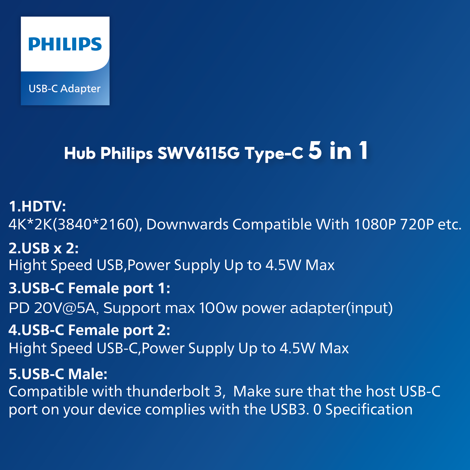 Hub Philips 5 in 1 USB C to HDMI+USB+PD SWV6115G