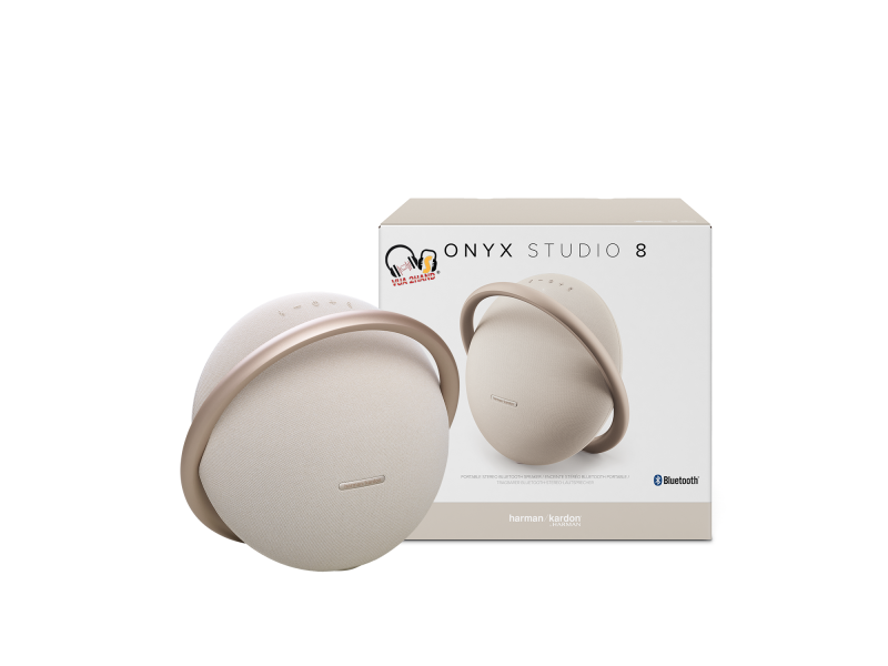 Tiếp nối sau thành công của Onyx Studio 7, Onyx Studio 8 được làm từ vật liệu tái chế, kết hợp các lựa chọn thân thiện với môi trường, dáng tròn đều kết hợp tay cầm uốn cong qua mặt trước của loa tạo hình dạng như dải ngân hà bao quanh trái đất cho thiết kế thêm cao cấp, thẩm mỹ hơn. Sản phẩm trang bị ê căng vải dệt chống bụi, ẩm, sử dụng bền ở nhiều môi trường khác nhau. Nhẹ nhàng di chuyển loa Bluetooth đến bất kỳ nơi nào với tay cầm cứng cáp, đặt vững vàng, không sợ rơi rớt với mặt đáy thiết kế phẳng tinh tế.