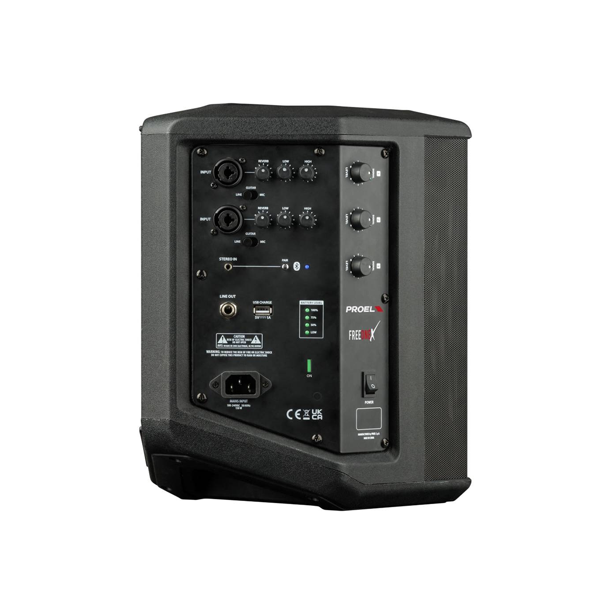 Đa Dạng Kết Nối Loa Proel FreeOnex hỗ trợ nhiều cổng kết nối khác nhau, bao gồm kết nối Bluetooth, USB, đầu vào âm thanh chuẩn XLR và 6.35mm. Điều này giúp người dùng dễ dàng kết nối với nhiều thiết bị âm thanh khác nhau như mixer, micro, máy tính, điện thoại thông minh hoặc các thiết bị âm thanh cá nhân khác.