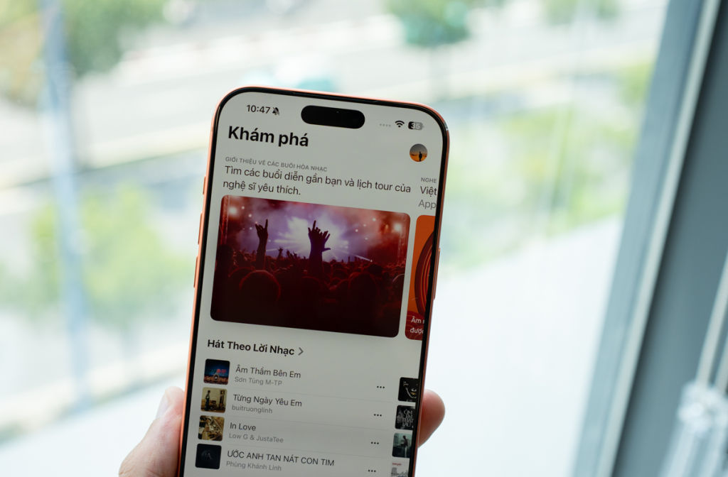 Tính năng Concerts mới trên Apple Music sẽ giúp bạn có thể thưởng thức concert của nghệ sĩ yêu thích ngay trên chiếc iPhone. Tính năng này sẽ tìm kiếm những buổi biểu diễn từ nghệ sĩ ở khu vực gần bạn, để phát những bản nhạc của ca sĩ này. Đồng thời cũng sẽ gợi ý thêm những bài hát có phong cách tương tự.